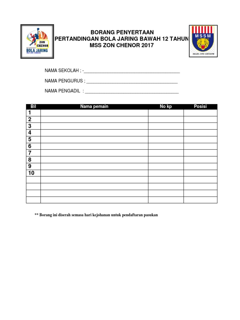 Caranya sangat mudah dan tidak perlu banyak syarat untuk men… Savesave borang skor bola jaring for later. Kejohanan bola jaring majlis sukan sekolah malaysia (mssm) tahun 2019. Click on document borang penyertaan bola jaring.doc to start downloading. Olahraga ini memiliki banyak kesamaan dengan bola basket, berawal dari versi awal bola basket wanita. 2shared gives you an excellent opportunity to store your files here and share them with others. Kelab bola jaring sekolah kebangsaan tunku putera karnival pertandingan bola jaring peringkat sekolah. 1) borang pendaftaran 2) borang pertandingan dan peraturan bola jaring. Prediksi bola, tebak skor, parlay campuran dan bocoran bola. Skor bola merupakan situs livescore yang memberikan hasil skor terjitu dan terupdate, prediksi mix parlay, jadwal pertandingan bola, hasil pertandingan bola terupdate. Pembayaran mudah, pengiriman cepat & bisa cicil 0%. Here you can download file borang penyertaan bola jaring. 22 mac 2019 hari :